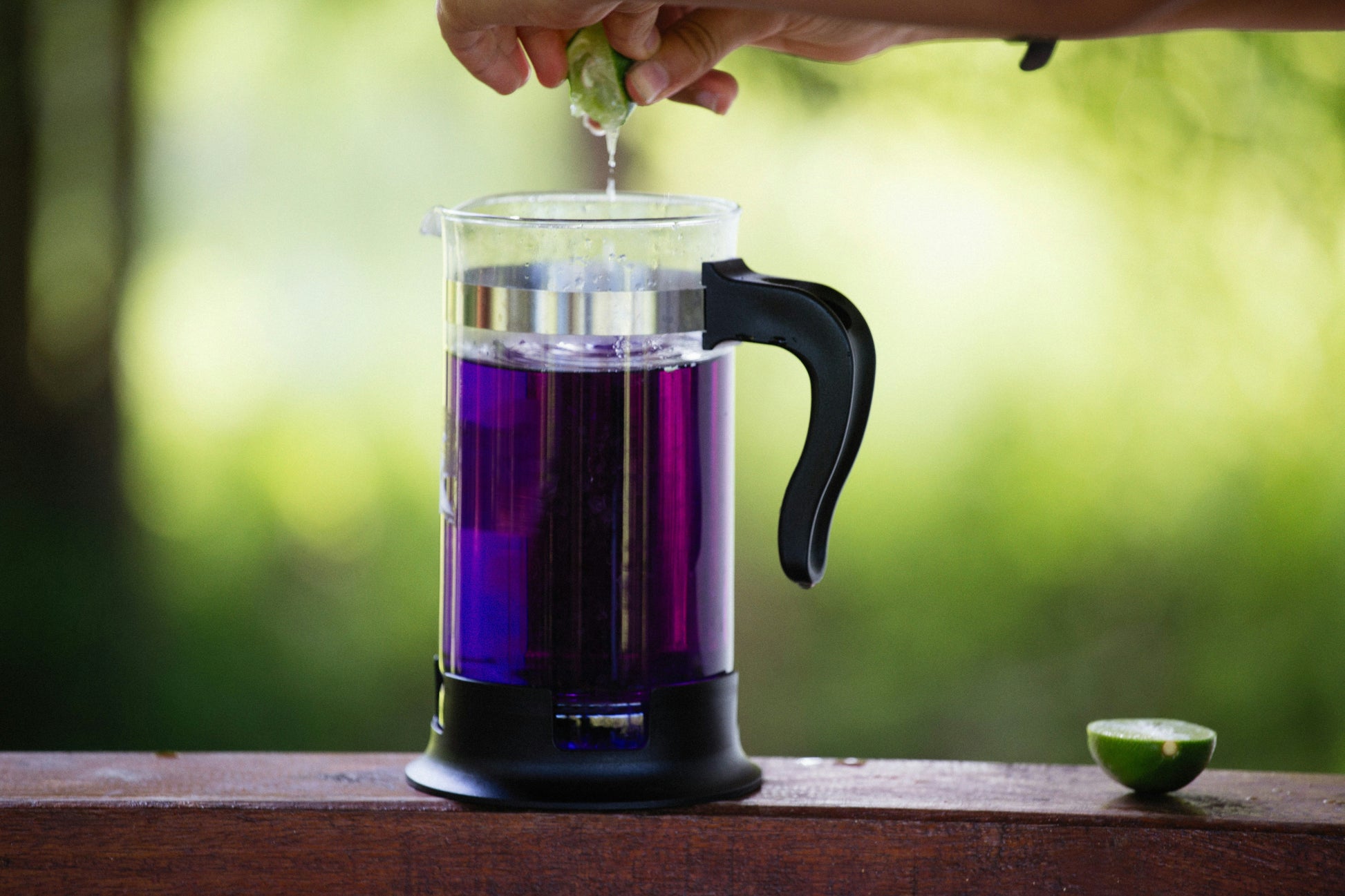 A vibrant and exotic cold infusion with purple papaya and berries, naturally refreshing.